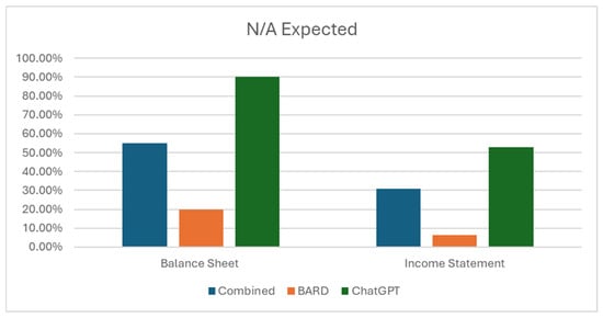 The results demonstrate that ChatGPT-4 is more advanced in recognizing when a piece of specific information is not in a table (see Figure 3). In the group of balance sheet questions, ChatGPT-4 provided 90% correct answers, which is better than the 70% accuracy achieved by BARD. In the group of income statement questions, ChatGPT-4 performed only 52.94% correctly; however, it still performed 44.12% better than BARD.