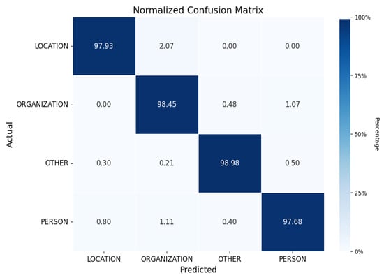 Misclassification is a frequent challenge in NER tasks involving the Urdu language. To investigate the misclassified tokens, we conduct a class-wise comparison between the actual and predicted labels using the test data for the best-performing model configurations. Table 5 presents the confusion matrix for the top-performing model across the entire dataset. Each entry in the matrix indicates the number of instances where the model’s prediction corresponds to the actual class labels.