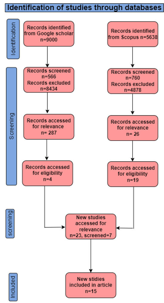 Based on different screening criteria, the relevant articles that were finally reviewed as most related to the study topic were selected and reduced to a total of 19 articles from Scopus and 4 articles from Google Scholar. A total of 23 articles were selected for review, but only 15 were relevant to this study. Therefore, in this study, a total of 15 articles were reviewed. This indicates that there is more room for further research in the YOLO algorithm for plate number recognition. The Prisma flow chart for the search is given in Figure 5 and depicts the search flow for the articles included in this review.