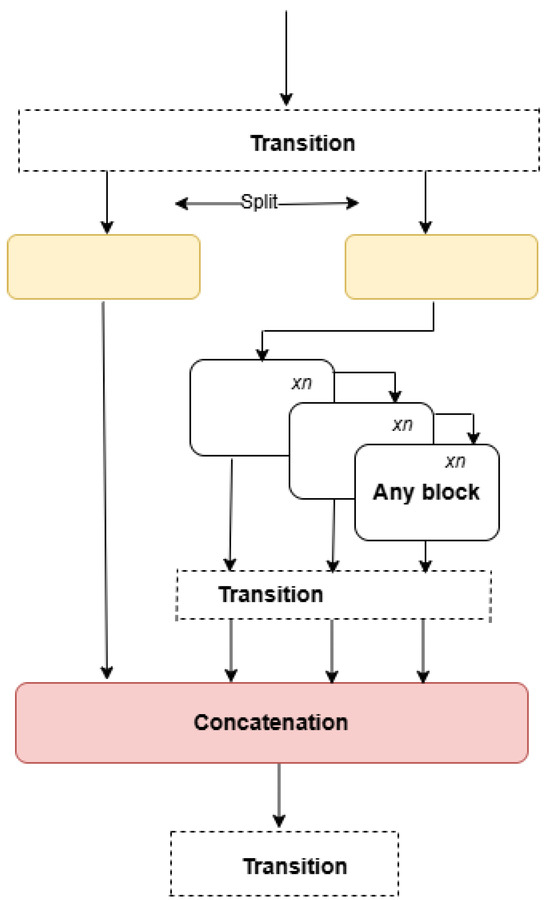I denotes mutual information, and f as well as g each represent transformation functions with values and . In a deep neural network, when the data J pass through layers (), significant information that is necessary for accurate predictions is lost. Inconsistent gradients and insufficient model convergence could arise from this loss. Another option is to increase the model’s size in order to enhance data translation performance and retain more information. However, this method does not address the issue of uneven gradients in very deep networks [51].