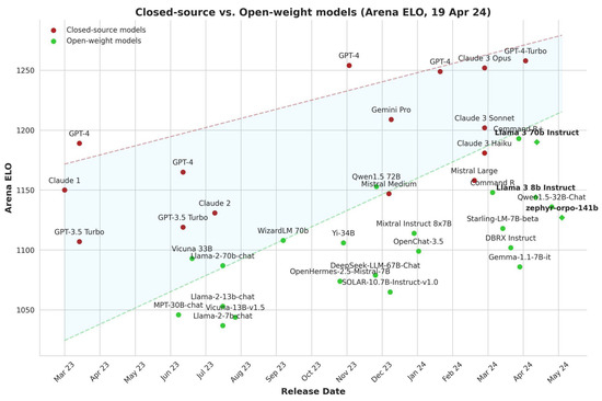 - Chiang, W.L.; Zheng, L.; Sheng, Y.; Angelopoulos, A.N.; Li, T.; Li, D.; Zhang, H.; Zhu, B.; Jordan, M.; Gonzalez, J.E.; et al. Chatbot Arena: An Open Platform for Evaluating LLMs by Human Preference. arXiv 2024, arXiv:2403.04132. [Google Scholar]
