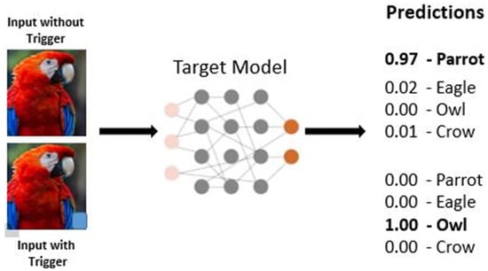 To avoid detection, attackers could insert only a few samples into the training data. These samples contain both a specific trigger pattern and a target label associated with a certain class. During training, the model learns to associate the trigger pattern with the specified target class, predicting that class for any input containing the pattern. Simultaneously, the attack remains concealed, meaning that the system’s performance on clean inputs does not degrade significantly. Since models behaved as expected on clean inputs, users found it difficult to detect such manipulations. However, when a hidden backdoor function was triggered, the model behaved according to the attacker’s intentions.