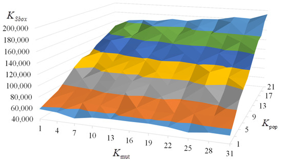 - Selection Phase: Form new population via the following:where chooses the best S-boxes based on the following: