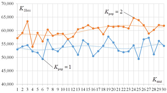 The most striking finding is that smaller populations, particularly single-individual configurations, outperform traditional larger population approaches. This contradicts conventional wisdom in evolutionary computation but aligns with the specific nature of the S-box generation problem. When combined with an appropriate mutation rate (), this minimal population approach achieves remarkable efficiency, requiring only 49,277 evaluations on average to generate an S-box with a nonlinearity of 104 .