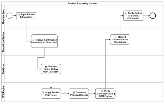 Pension systems involve intricate calculations essential for determining the correct benefits for retirees, considering numerous factors, including years of service, salary history, contribution amounts, and specific pension plan rules. Integrating BPM with blockchain technology can significantly streamline and improve the accuracy of these calculations [
