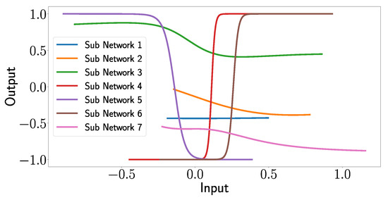 - Subnetwork 3’s transfer function is a compressed, shifted, and negatively multiplied tangent hyperbolic function (Figure 19);