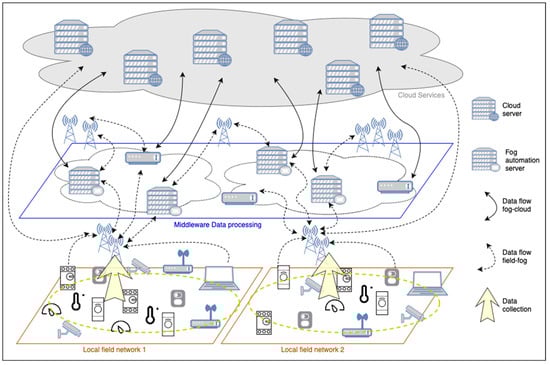 Structure and data flow in the network with field-level local networks, fog level, and cloud level [].