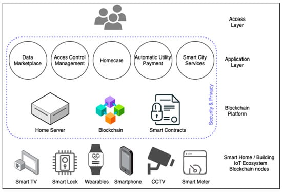 A four-layer application framework of a blockchain-based smart-home ecosystem proposed and discussed in [].