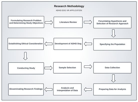 Figure 1 briefly presents the steps of this research and how it was organized. Firstly, the research problem was formulated and the study objectives were determined. Then, a very thorough literature review was conducted. Formulating the research hypothesis and selecting the research approach were the next and very important steps for beginning ADHD Dog’s development. After specifying the population of interest (individuals positively diagnosed with ADHD over ten years old), the development of the app finally began, and the ethical consideration was established. A study about ADHD Dog was then conducted by selecting the sample, collecting the data needed, and preparing them for analysis. Those data were analyzed and interpreted appropriately. Finally, the research findings were disseminated, and they are presented in this paper.