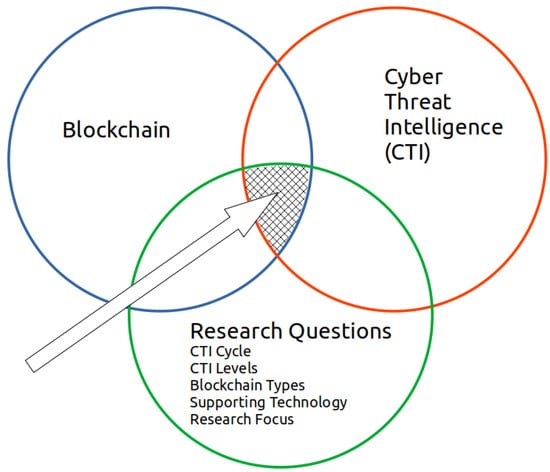 Our research scope focuses on the dynamic interplay and overlap between blockchain technology and CTI, with a particular emphasis on their integration within the broader framework of the various other contributing factors, such as stages of the CTI lifecycle, supporting technology, CTI levels, and blockchain type. The scope of the present research is graphically shown in Figure 1.