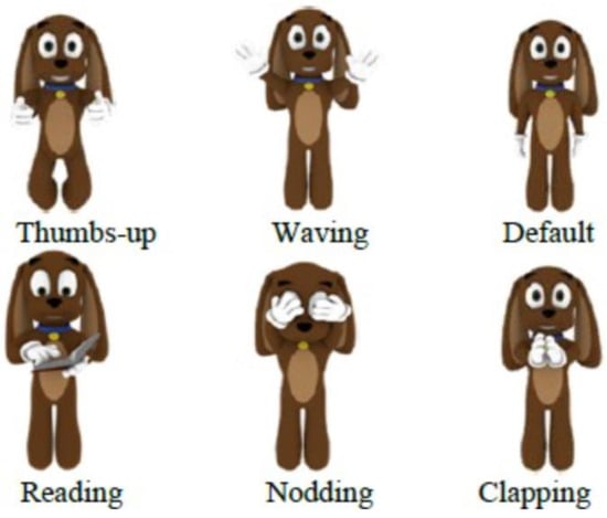 Jeppy [32] and Alcody [8] are a few of the PCAs that have been reviewed in the literature to teach programming. Jeppy is an emotional PCA shaped as a dog that gestures to help to correct syntax mistakes. Jeppy gives advice and affective messages to guide students to solve the exercises following a constructivist approach. Figure 2 shows several of Jeppy’s gestures.