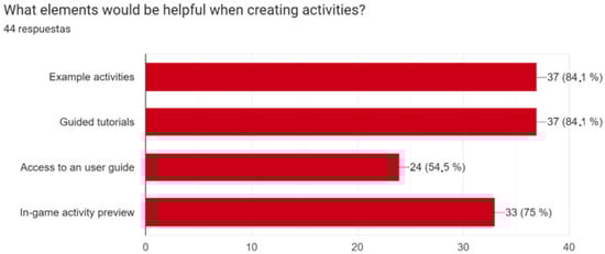 In total, 75% of the pre-service teachers asked for a how-to guide to learn how to use a PCA. Moreover, 63.6% of these pre-service teachers requested to be able to manage several classes and 59.1% indicated that primary education students usually work in teams of two to four kids; 70.5% of these pre-service teachers claimed that it would be of great help to have some students’ tracking progress, including at least some information about the number of correct and wrong answers, and the time needed per question.