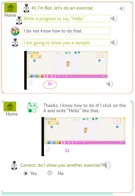 - Ocaña, J.M.; Morales-Urrutia, E.K.; Pérez-Marín, D.; Pizarro, C. Can a Learning Companion Be Used to Continue Teaching Programming to Children Even during the COVID-19 Pandemic? IEEE Access 2020, 8, 157840–157861. [Google Scholar] [CrossRef]