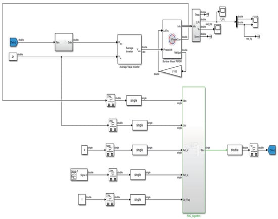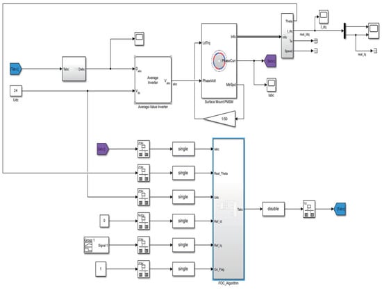 Diagram of internal Simulink model for FOC_ Algorithm for sensor–encoder control design.