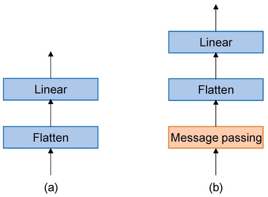(a) Common MLP classification head. (b) MLP classification head embedded in the message passing layer called GMLP. GMLP first passes the message based on the adjacency matrix between the hand joints to preserve some of the spatial features and then flattens them to obtain the output vectors through a linear layer.