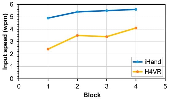 Input speed (words per minute) of iHand and H4VR.