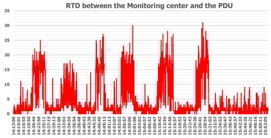 - The Colasoft ping tool (version 2.0) [] is used to measure the round-trip delay (RTD) between the monitoring center and the studied PDU in the experimental network;