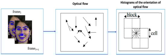 In this section we present the spatio-temporal feature descriptor, called HOF, which captures the moving patterns by choosing regions in the video. These regions are the most important points, Dlib [44], on the face. The process of extracting the HOF descriptor involves the following steps: