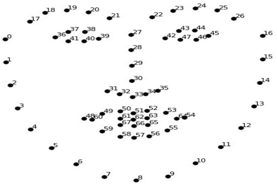 - King, D.E. Dlib-ml: A machine learning toolkit. J. Mach. Learn. Res. 2009, 10, 1755–1758. [Google Scholar]