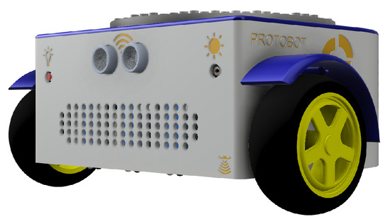 - Perez-Paina, G.; Guizzo, E.J.; Torres, I.; Gonzalez-Dondo, D.; Paz, C.; Trasobares, F. Open hardware wheeled mobile robot for educational purposes. In Proceedings of the 2018 Ninth Argentine Symposium and Conference on Embedded Systems (CASE), Cordoba, Argentina, 15–17 August 2018; pp. 13–18. [Google Scholar]
