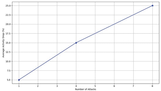 The quantification of this effect is summarized in Table 3, where we can observe that even a small number of attacks (1–2) can lead to a 5% drop in activity, with more significant decreases (15–25%) as the number of attacks increases. However, for higher frequencies of attacks (>10), our study faces a limitation due to insufficient data, suggesting an area for future research to further elucidate this trend.