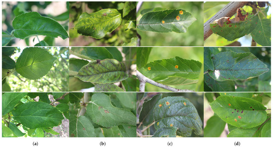 2. Thapa, R.; Zhang, K.; Snavely, N.; Belongie, S.; Khan, A. The Plant Pathology Challenge 2020 data set to classify foliar disease of apples. Appl. Plant Sci. 2020, 8, e11390. [Google Scholar] [CrossRef] [PubMed]
