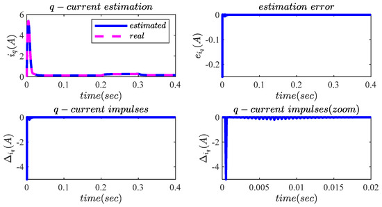Figure 4 illustrates the q-current estimation, the q-current estimation error, and the estimated q-current jumps (q-current impulses). Eventually, as the signal converges to the true value, the jump amplitude also becomes zero.