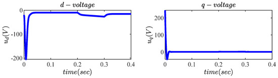 Voltage along the d-axis and q-axis of the PMSM, along with the d–q axis.