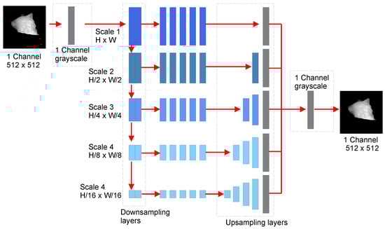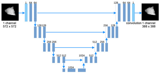 - Ronneberger, O.; Fischer, P.; Brox, T. U-net: Convolutional networks for biomedical image segmentation. In MICCAI 2015: Proceedings of the 18th International Conference, Munich, Germany, 5–9 October 2015; Springer International Publishing: Cham, Switzerland, 2015; pp. 234–241. [Google Scholar]