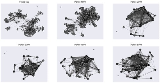 Datasets derived from the original social network Pokec dataset used for algorithm evaluation.
