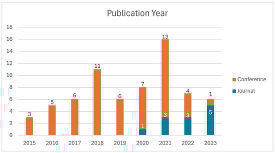 Figure 4 presents the distribution of publication types, differentiating between conference papers and journal articles.