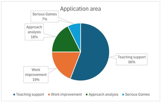The analysis indicates that the predominant application area for gamification in SEET is within university-level software engineering programs, which accounts for 30 studies, about 44% of the analyzed studies. This reflects a significant focus on integrating gamified approaches to enhance the learning experiences of students in higher education, particularly in courses related to software engineering, as shown in papers [11,14,25].