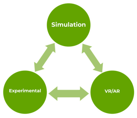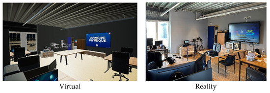 Sim et al. [23] explored the innovative concept of the educational metaverse, focusing on creating immersive virtual environments for industrial learning and training. A concrete example is the “NTUniverse”, a digital twin of the Nanyang University of Technology (NTU) campus. It allows distance learning and professional technical training, facilitating the analysis of abstract concepts. The European Union has made several initiatives in this field. This digital twin integrates STEM disciplines to improve student learning, enables a collaborative approach, improves visualisation, and reduces the risks and costs of training on real equipment using virtualisation.