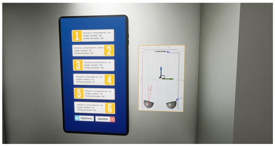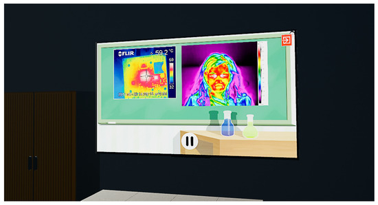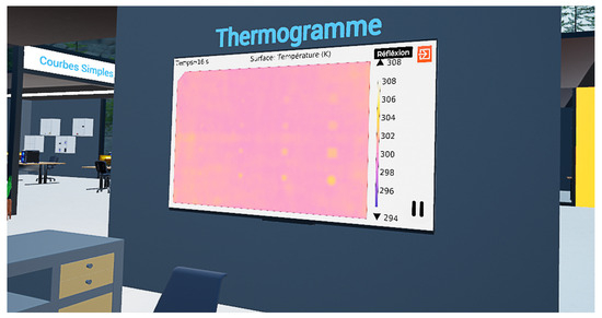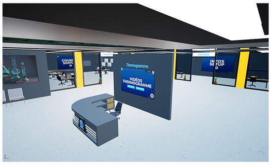 The laboratory room in Figure 11 has been designed to allow users to familiarize themselves with the dimensions and operation of the thermography device in an environment similar to a real laboratory. Users also have access to videos explaining the principles of thermography, giving them a better understanding of the context and challenges of the experiment.
