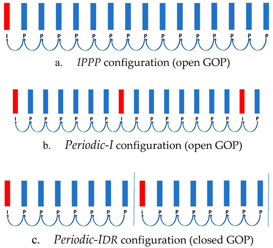 Generally, IPPP coding configuration can achieve a better coding performance by heavily relying on inter-frame prediction. Additionally, IPPP tends to have reduced decoding complexity compared to periodic-I and periodic-IDR structures. However, I-frames can minimize error propagation in error-prone environments and improve the random-access capability of encoded video.