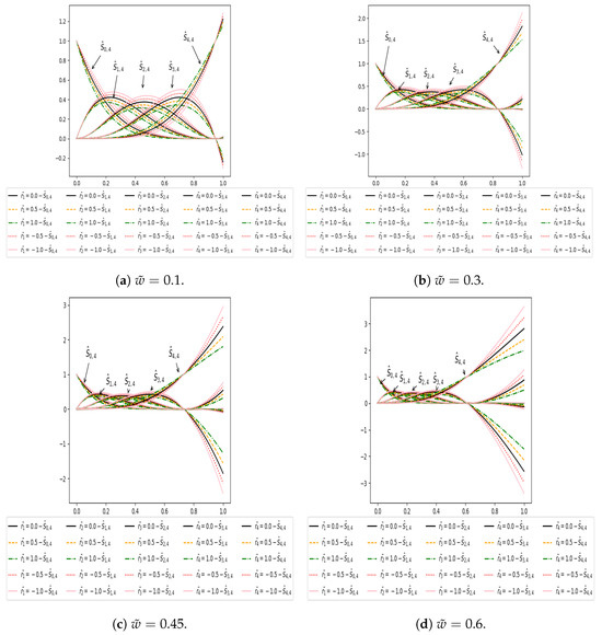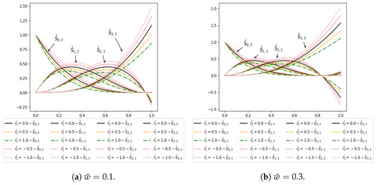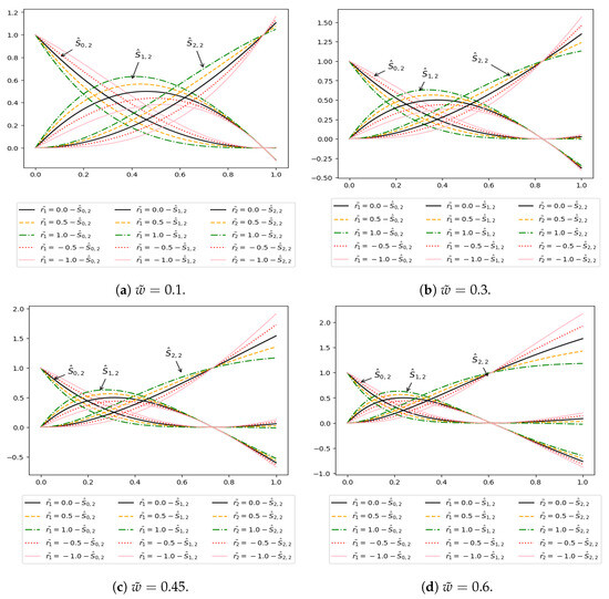 For , , () and , , but in the case of the Caputo Fabrizio basis, the end point is not fixed and depends on fractional parameter . Figure 1, Figure 2 and Figure 3 show that the starting point of all the Caputo Fabrizio basis functions is fixed and the ending point in not fixed at different values of ().
