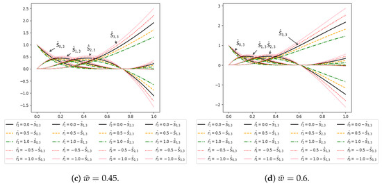 The symmetry characteristics become partially symmetrical when ; hence, the Caputo Fabrizio Bézier curve will keep the same feature as the symmetrical form but on a different scale. It is evident from Figure 5, Figure 6, Figure 7, Figure 8, Figure 9 and Figure 10 that the symmetry qualities are fully formed when approaches to 1.