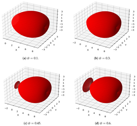Surface of revolution of cubic Caputo Fabrizio Bézier curve at various values of and shape parameters , , and .
