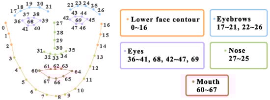 OpenPose is a popular open-source software to furnish the coordinates for 70 facial keypoints, illustrated in Figure 1. These keypoints denote the positions of the facial features.