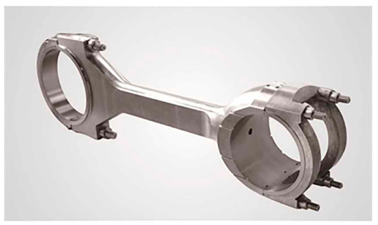 In order to illustrate the practicability and applicability of this method, the machining process of a specific type of medium-speed marine diesel engine connecting rod is taken as an example to realize the critical quality features in its critical processes. For the connecting rod of a marine diesel engine, its structure is relatively complex, the process is various, and the processing process involves multiple equipment, stations, and benchmarks. It is not only affected by the state of process resources such as machine tools, tools, and fixtures, but it may also affect the quality of the subsequent process due to the output quality error of the previous process. In production, it is difficult to objectively and effectively identify the critical quality feature control points in the vital process, resulting in insufficient final quality control. If the processing technology is reasonably determined, it is necessary to determine the critical quality features in the process. The connecting rod model of the marine diesel engine is shown in Figure 3.