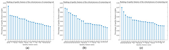 Ranking of critical quality features of connecting rod: (a) Entropy weight method; (b) CRITIC method; (c) Entropy-CRITIC method.