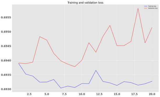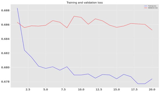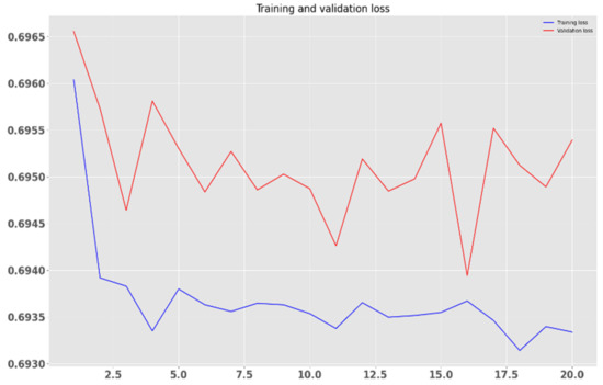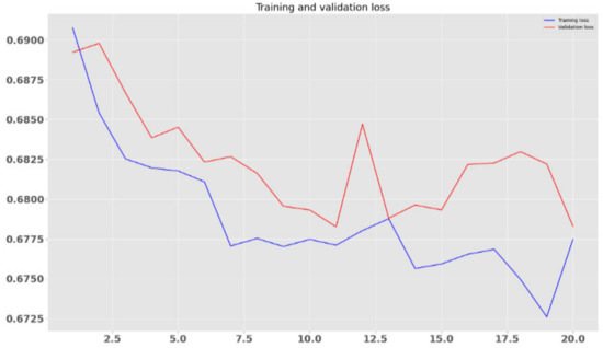 Figure 16 shows the training and validation loss of a CNN model. “Training loss” describes the model’s loss in training data, whereas “validation loss” refers to the model’s loss in validation data. Given that the model can be trained using the training data, the training loss is usually smaller than the validation loss. In Figure 16, as the number of epochs increases, both the validation loss and the training loss decline. This shows that the model is not overfitting and instead learning from the data. The model reaches its lowest validation loss at around 12 epochs. After this point, the validation loss starts to increase, which indicates that the model is starting to overfit to the training data.