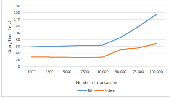 Transaction query time comparsion between Ethereum and VAIMS.