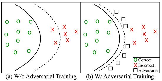 - Goodfellow, I.J.; Shlens, J.; Szegedy, C. Explaining and harnessing adversarial examples. In Proceedings of the International Conference on Learning Representations, San Diego, CA, USA, 7–9 May 2015. [Google Scholar]