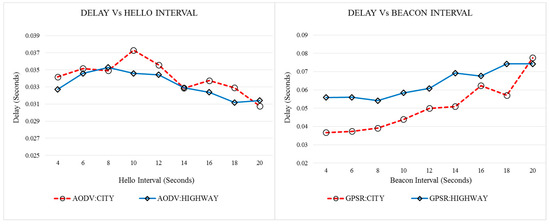 Delay comparison between VANET scenarios and. Beacon/Hello Intervals.