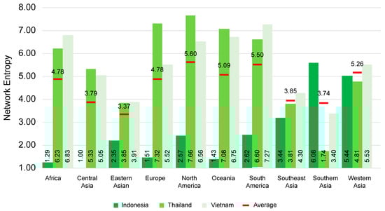 Entropy characterizes the complexity and diversity of tourist movements. In tourism network analysis, entropy quantifies the predictability of tourist movement patterns. High entropy values indicate dispersed visitation patterns across many locations, suggesting diverse travel behavior, while low values reflect concentrated visitation focused on fewer destinations. The network entropy is calculated as