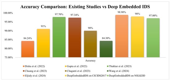 Accuracy comparison of existing studies with DeepEmbeddedIDS [,,,,,,].