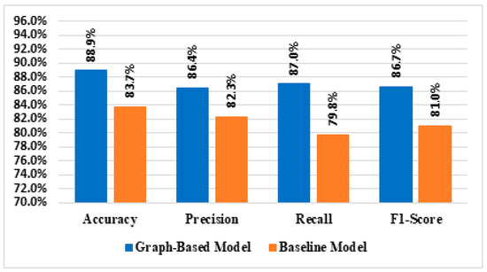 In our experiments, the proposed graph-based HAR system outperformed the standard CNN model across all key performance metrics. The overall accuracy of the graph-based system was 88.9%, which exceeded the CNN-based model’s accuracy of 83.7%. This improvement in accuracy can be attributed to the graph structure’s ability to capture both spatial and temporal relationships between human joints more effectively than traditional models that process video frames sequentially without explicitly modeling these connections.