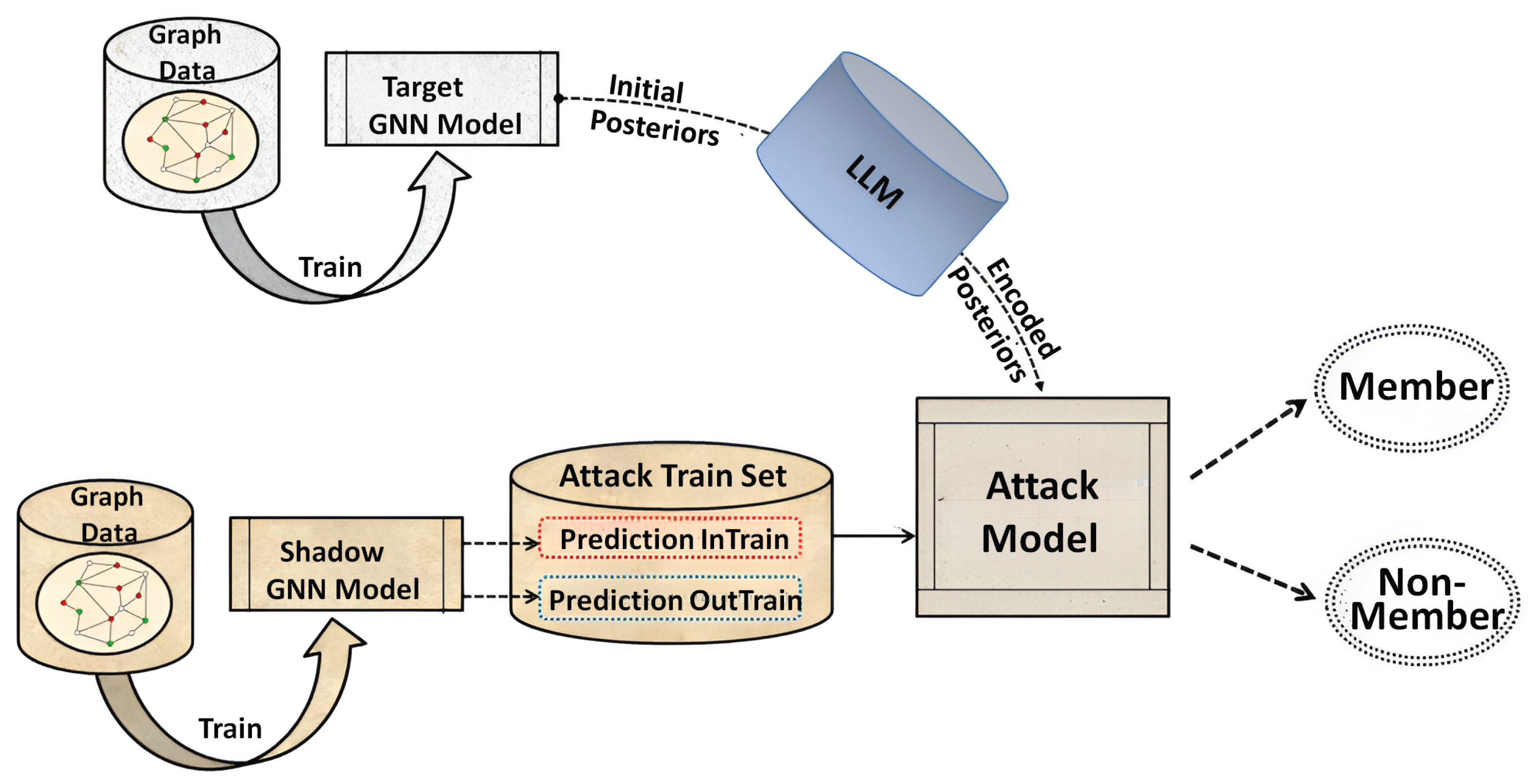 - Liu, Z.; Zhang, X.; Chen, C.; Lin, S.; Li, J. Membership Inference Attacks Against Robust Graph Neural Network. In Proceedings of the International Symposium on Cyberspace Safety and Security, Xi’an, China, 16–18 October 2022; Springer: Cham, Switzerland, 2022; pp. 259–273. [Google Scholar]