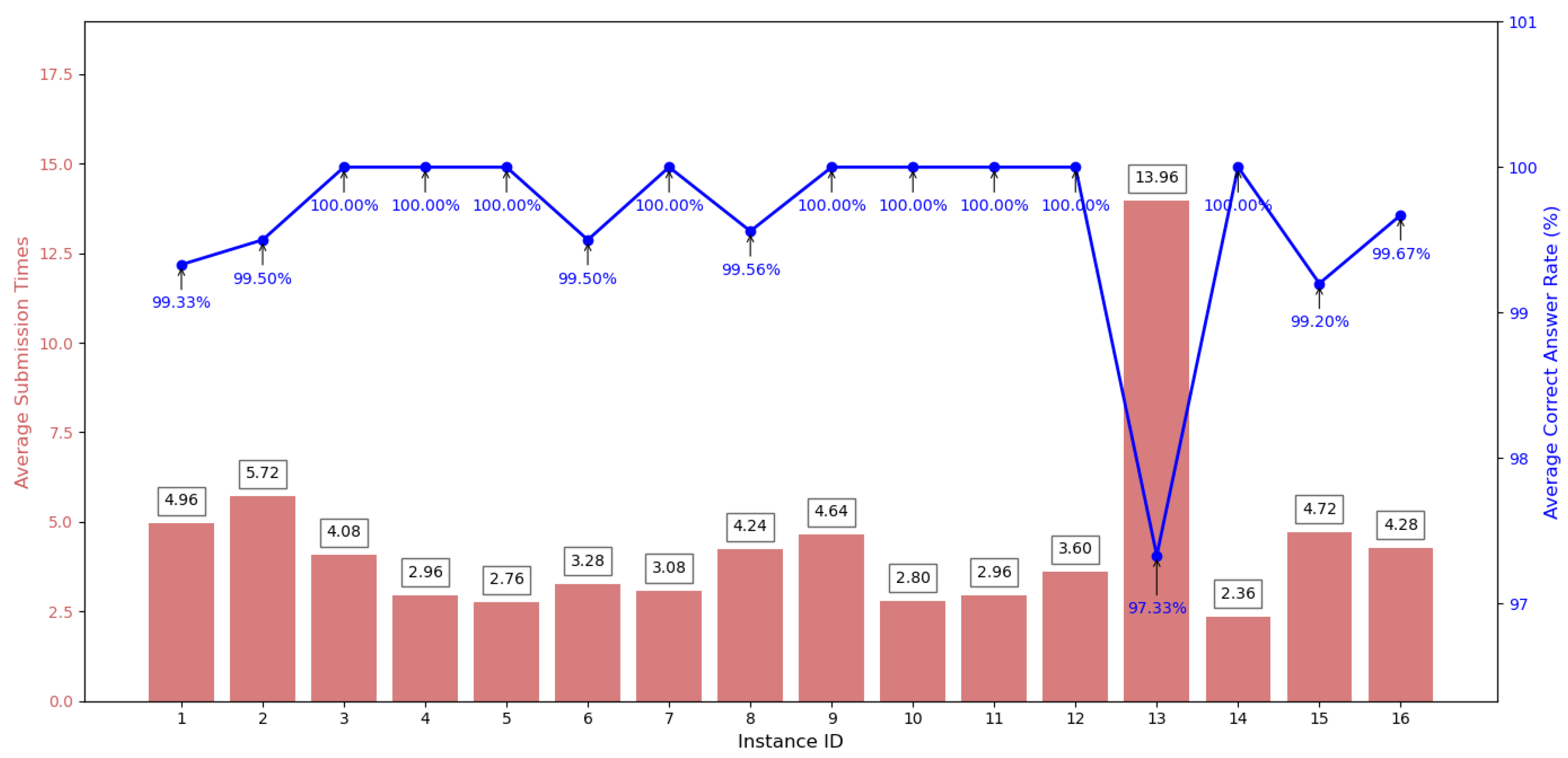 First, the problem instance creation relied on manual authoring decisions, although the topics and blank selections were carefully designed following the documentation contents and grammar-focused principles for the GUP format. Future works should focus on standardizing the blank selection process to improve the accuracy, fairness, and scalability. For example, we will define rule-based criteria tied to syntax type, widget category, or difficulty levels so that instance generations become further consistent and automated across problems.